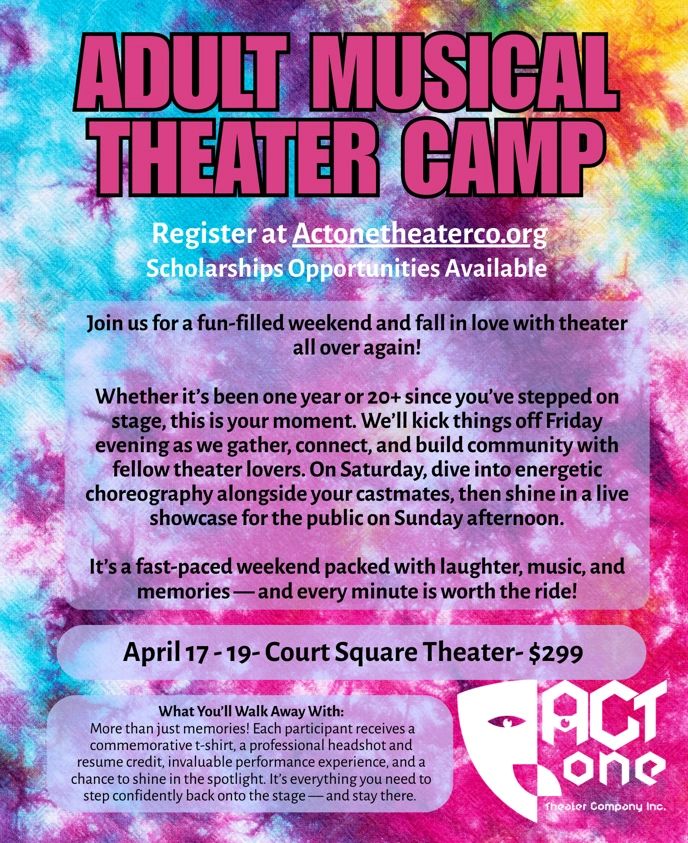 Register for Adult Musical Theater Camp by CLICKING HERE!!